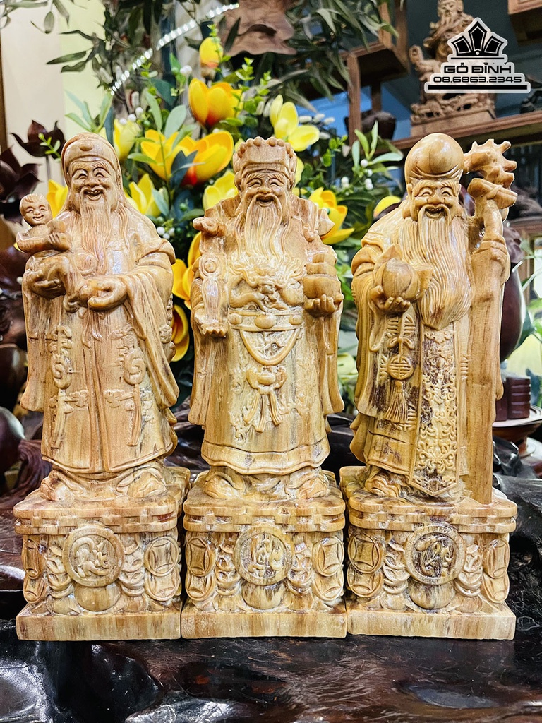 Tượng Phúc Lộc Thọ (Tam Đa) Gỗ Huyết Long