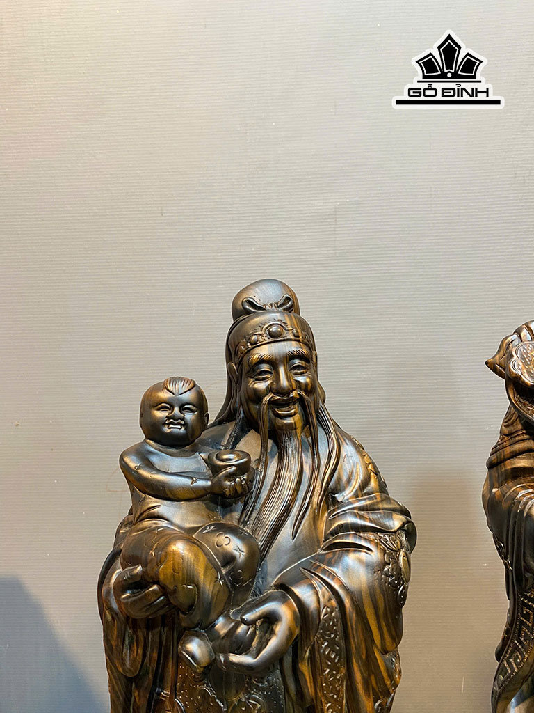 Tượng Phúc Lộc Thọ (Tam Đa) Gỗ Mun Hoa Cao 50 Ngang 19 Sâu 15 (cm) - KHÔNG KÈM KỶ