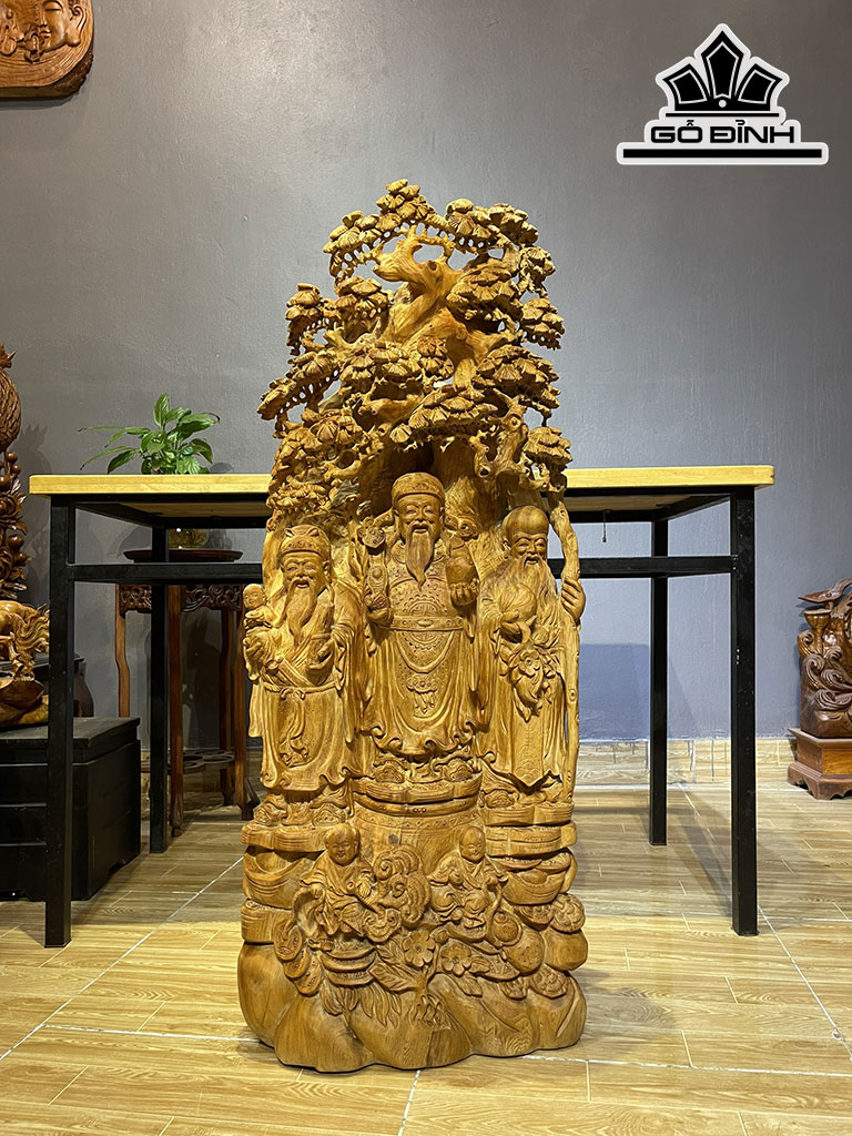 Tượng Phúc Lộc Thọ (Tam Đa) Gỗ Ngọc Am Cao 103 Ngang 43 Sâu 25 (cm)