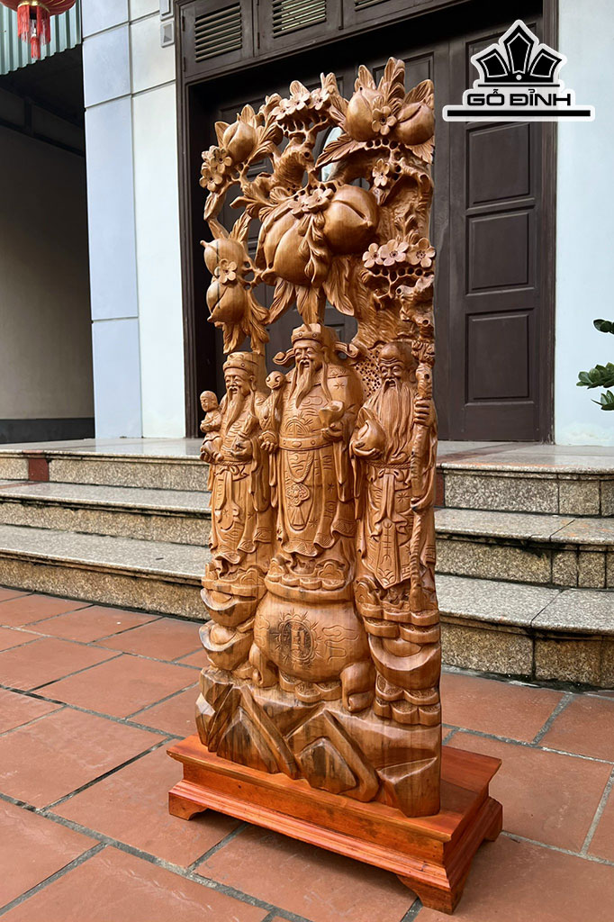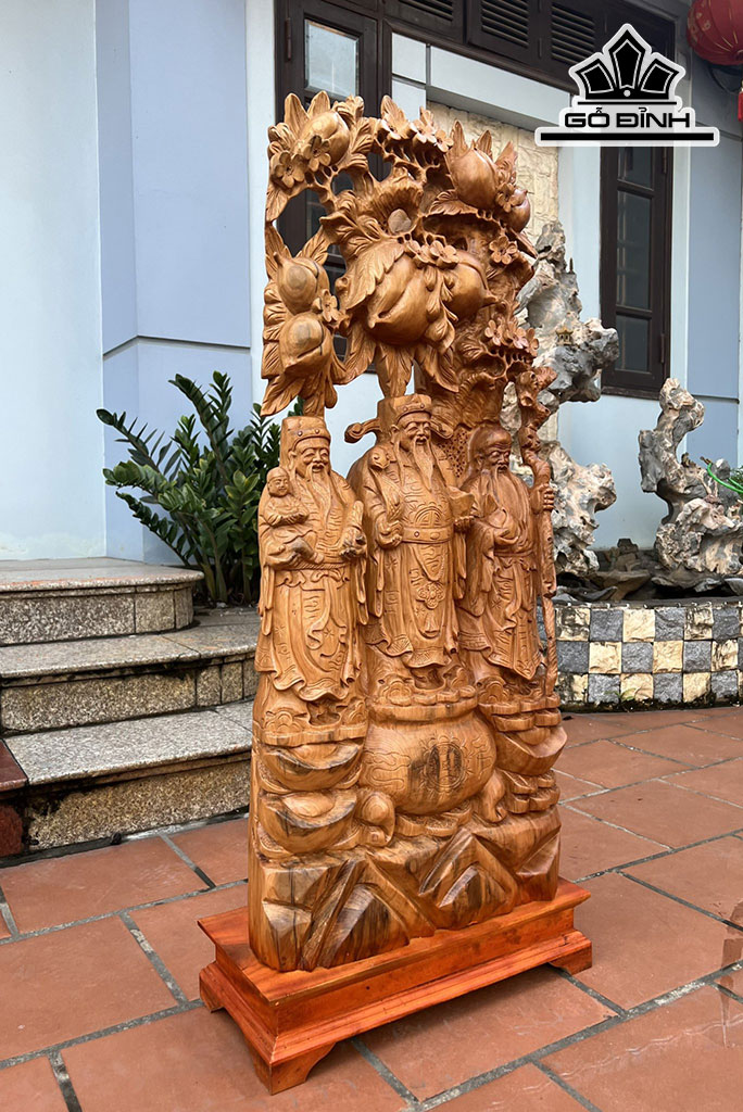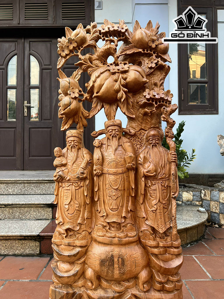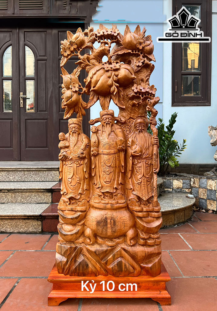 Tượng Phúc Lộc Thọ ( Tam Đa) Gỗ Ngọc Am Cao 113 Ngang 43 Sâu 18 (cm)