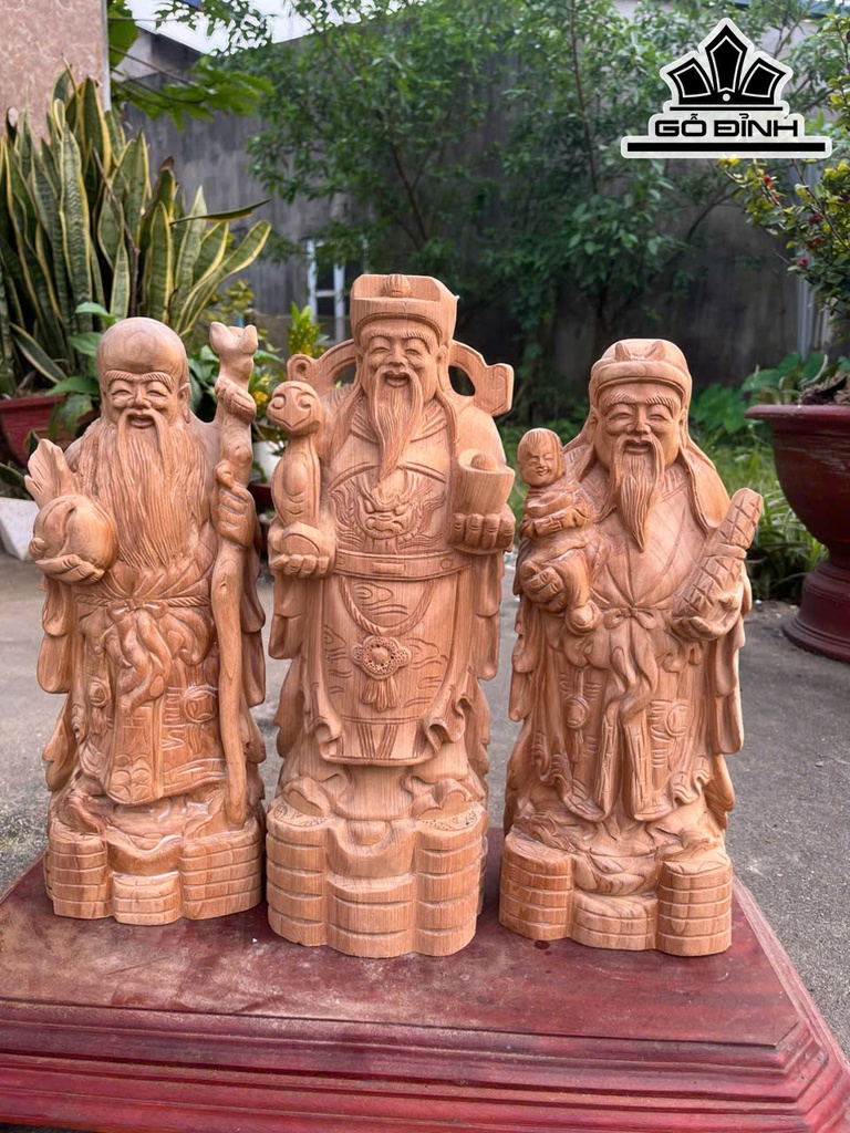 Tượng Phúc Lộc Thọ (Tam Đa) Gỗ Ngọc Am Cao 40 Ngang 14 Sâu 12 (cm)