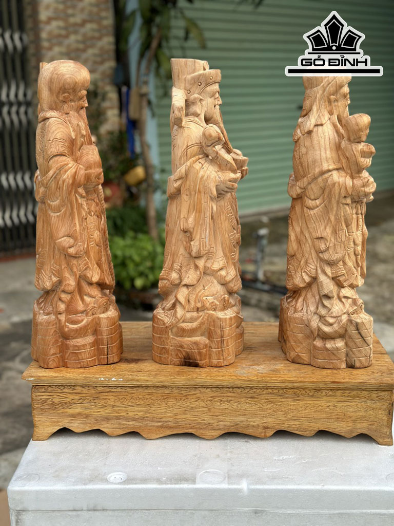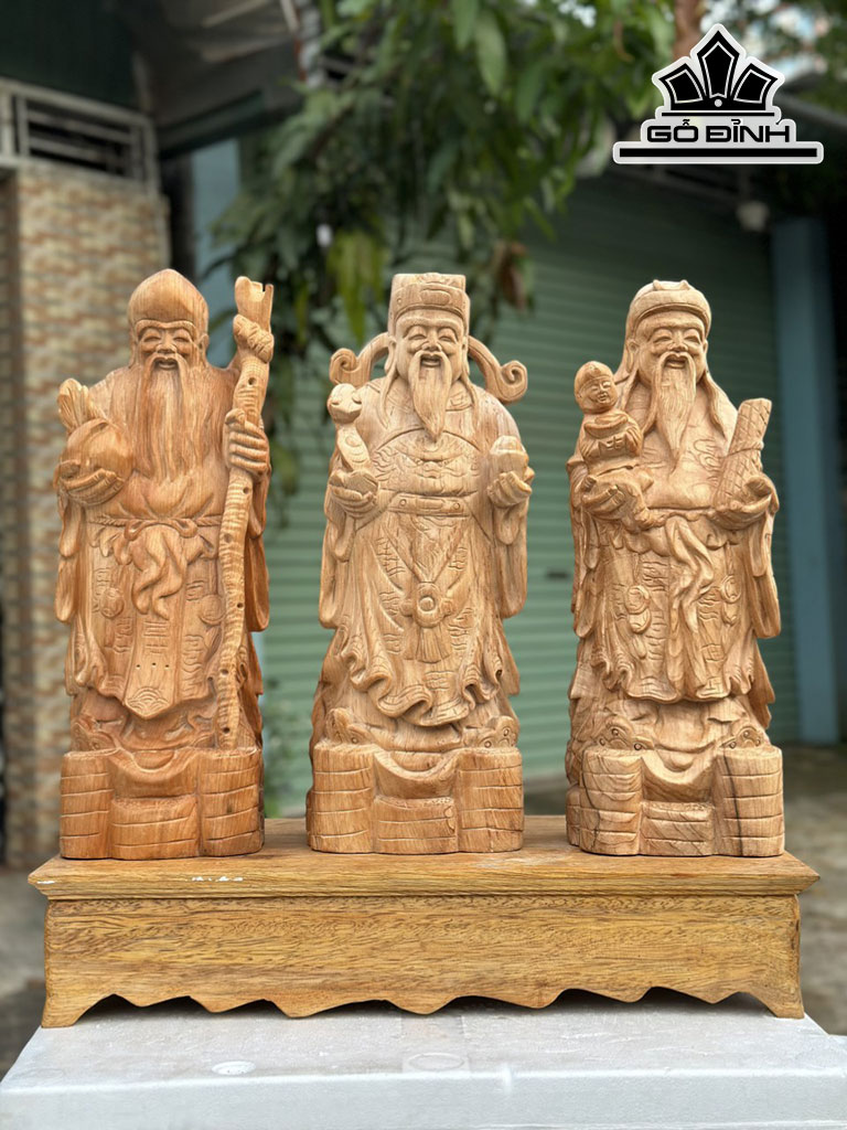 Tượng Phúc Lộc Thọ (Tam Đa) Gỗ Ngọc Am Cao 50 Ngang 17 Sâu 14 (cm)