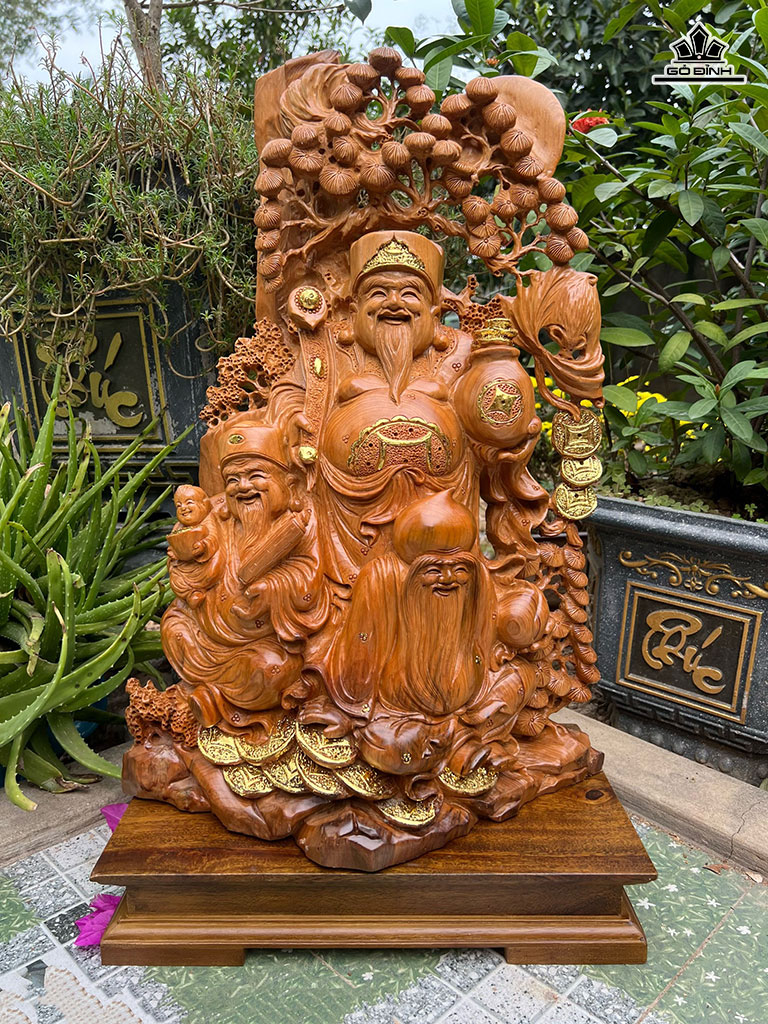Tượng Phúc Lộc Thọ ( Tam Đa) Gỗ Ngọc Am Cao 65 Ngang 43 Sâu 25 (cm)