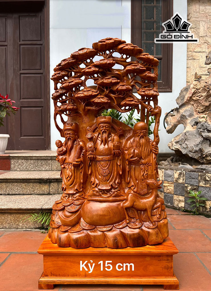 Tượng Phúc Lộc Thọ (Tam Đa) Gỗ Ngọc Am Cao 98 Ngang 50 Sâu 21 (cm)