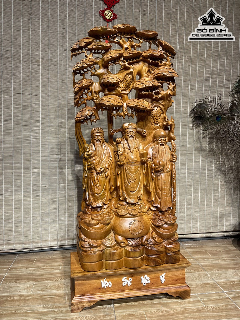 Tượng Phúc Lộc Thọ (Tam Đa) Gỗ Ngọc Am Cao 99 Rộng 45 Sâu 18 (cm)