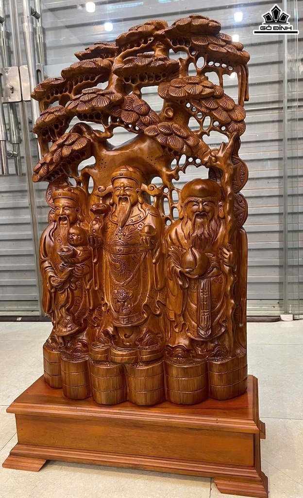 Tượng Phúc Lộc Thọ (Tam Đa) Gỗ Ngọc Am Cao Cả Kỷ 94 Ngang 50 Sâu 19 (cm) - Kỷ Cao 15 (cm)