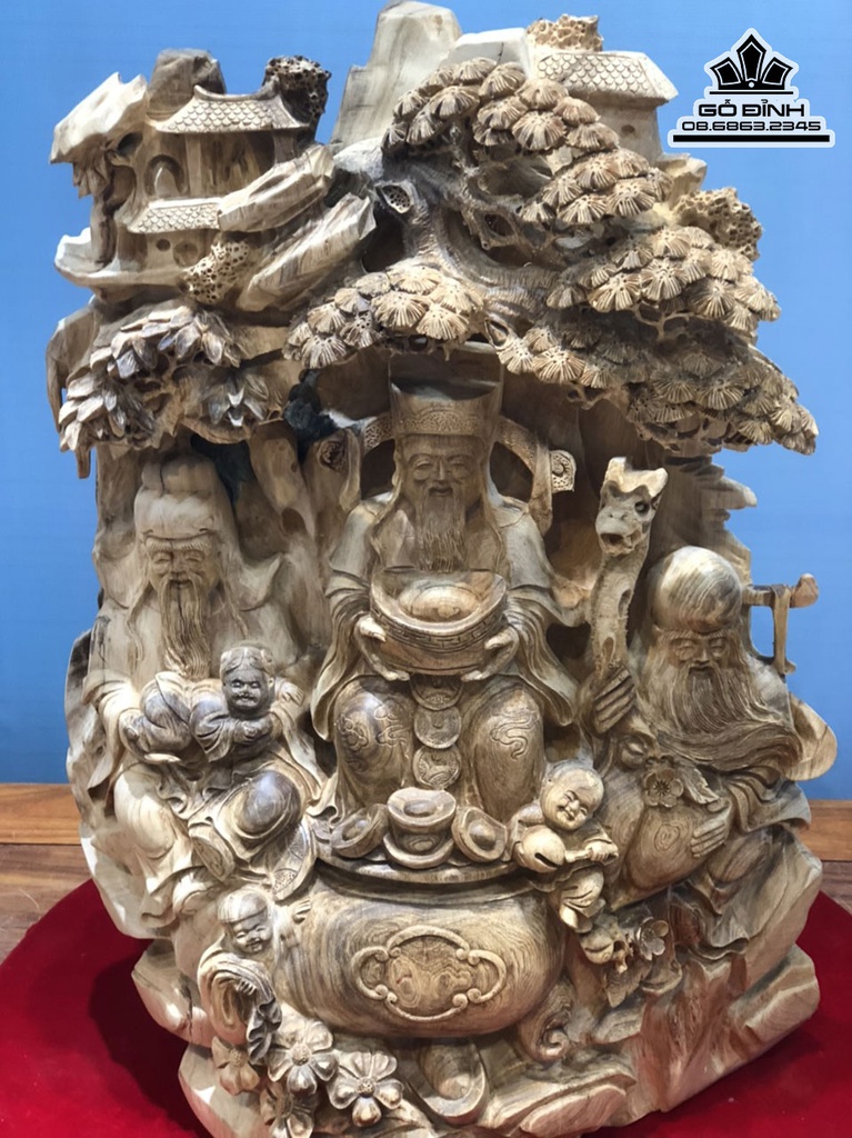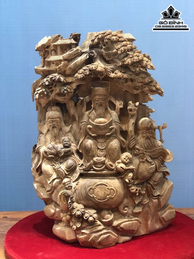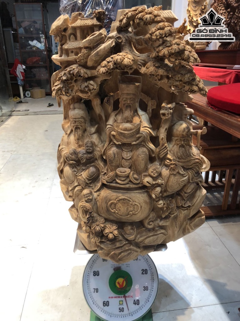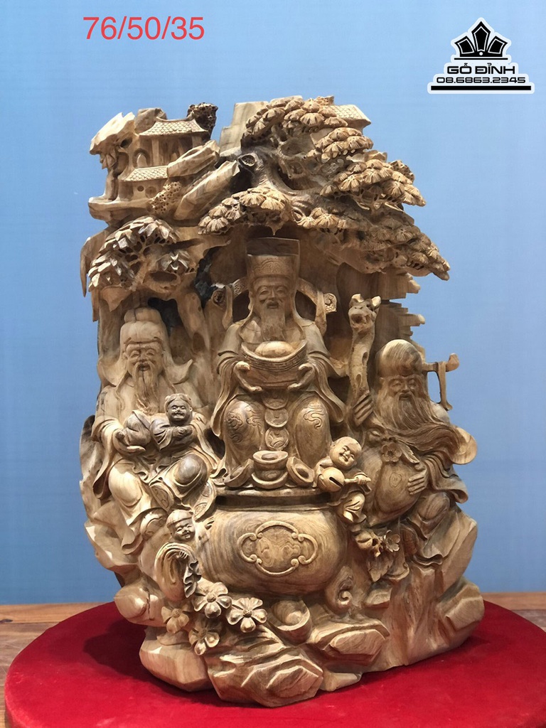 Tượng Phúc Lộc Thọ (Tam Đa) Gỗ Ngọc Am Liền Khối Cao 76 Ngang 50 Sâu 35 (cm)