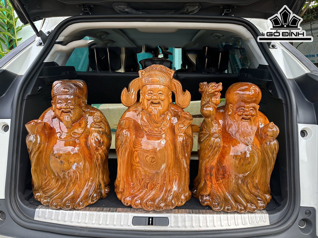 Tượng Phúc Lộc Thọ (Tam Đa) Gỗ Nu Hương Cao 55 Đường Kính 30 (cm)