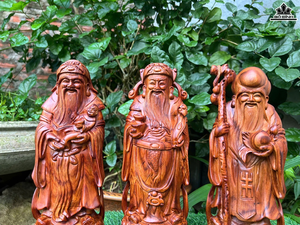 Tượng Phúc Lộc Thọ (Tam Đa) Gỗ Sưa Cao 30 Ngang 10 Sâu 8 (cm)