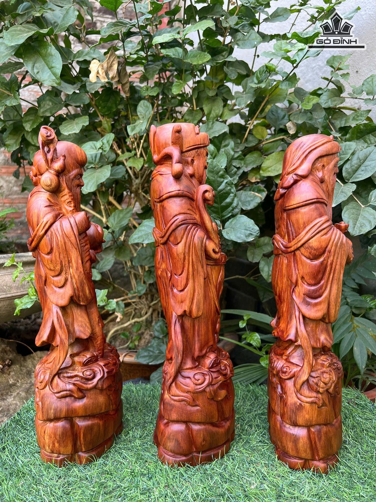 Tượng Phúc Lộc Thọ (Tam Đa) Gỗ Sưa Cao 39 Ngang 13 Sâu 10 (cm)