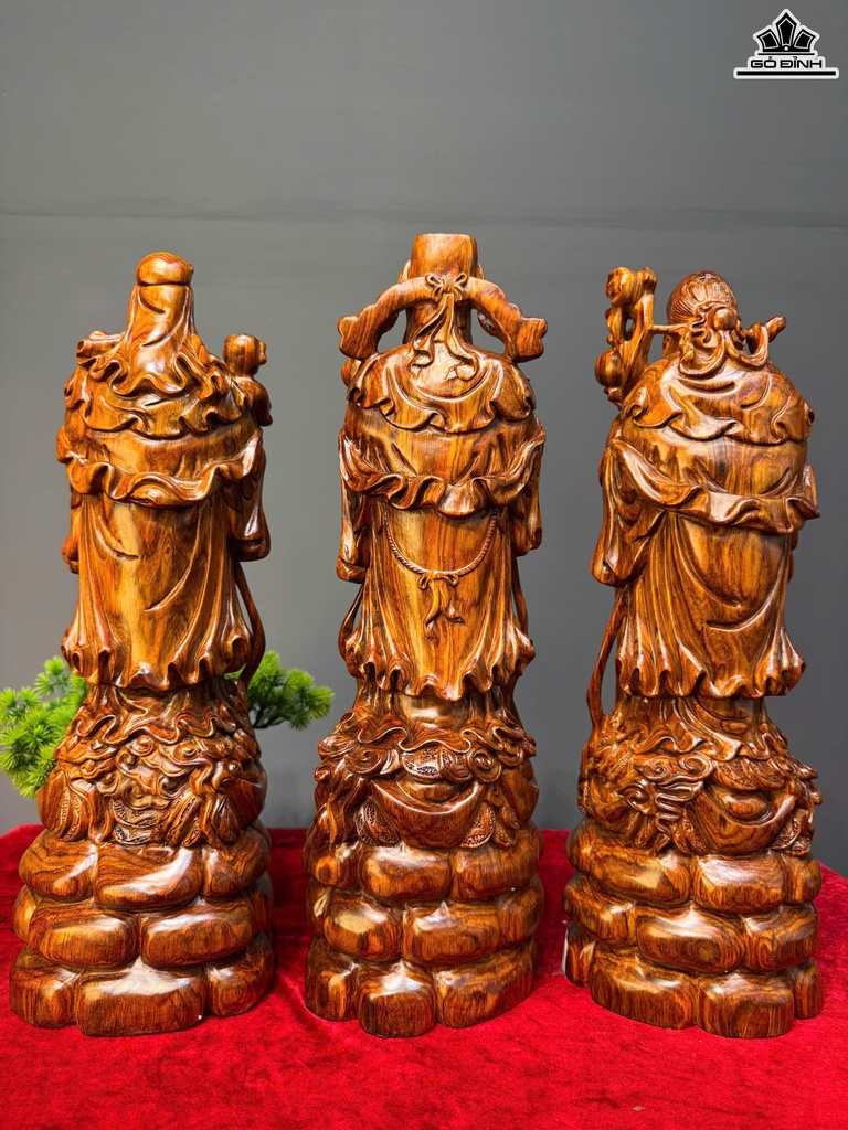Tượng Phúc Lộc Thọ (Tam Đa) Gỗ Sưa Cao 45 Ngang 15 Sâu 13 (cm)