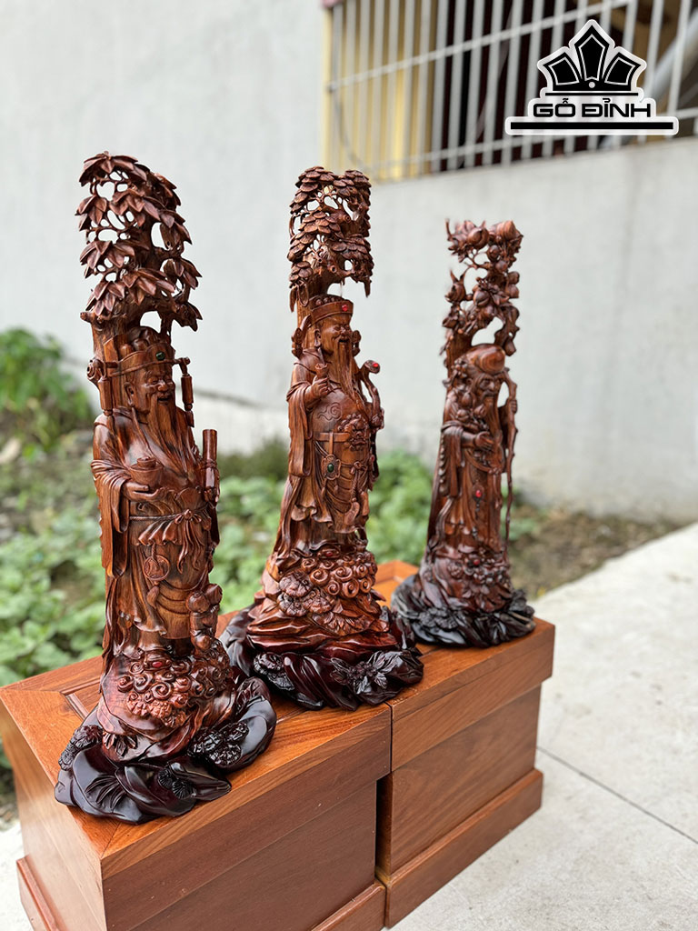 Tượng Phúc Lộc Thọ (Tam Đa) Gỗ Sưa Cao 60 Ngang 22 Sâu 22 (cm)