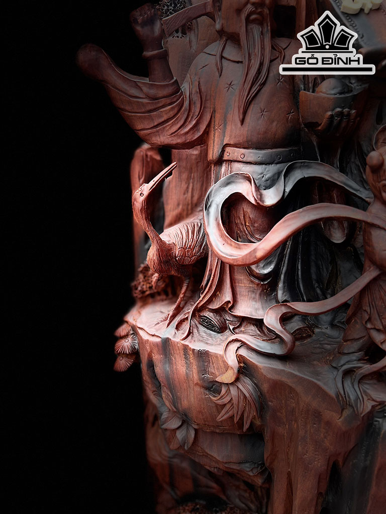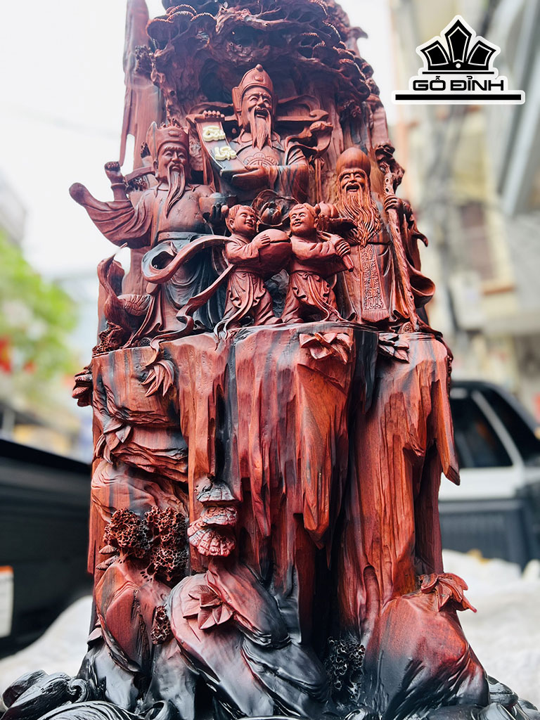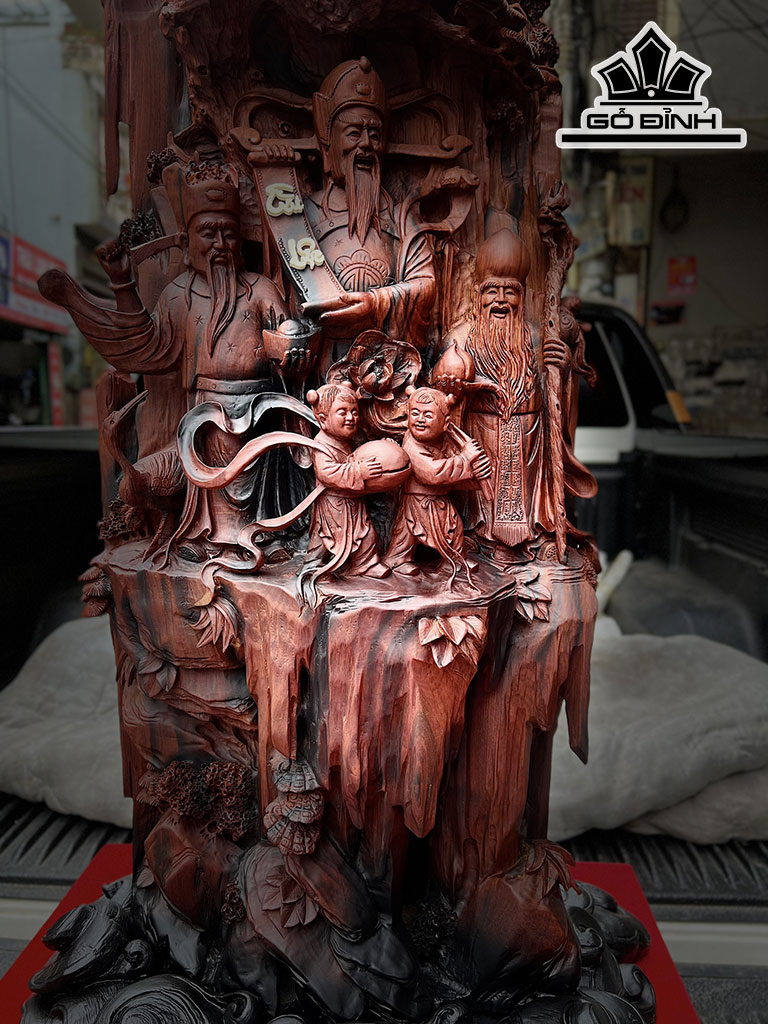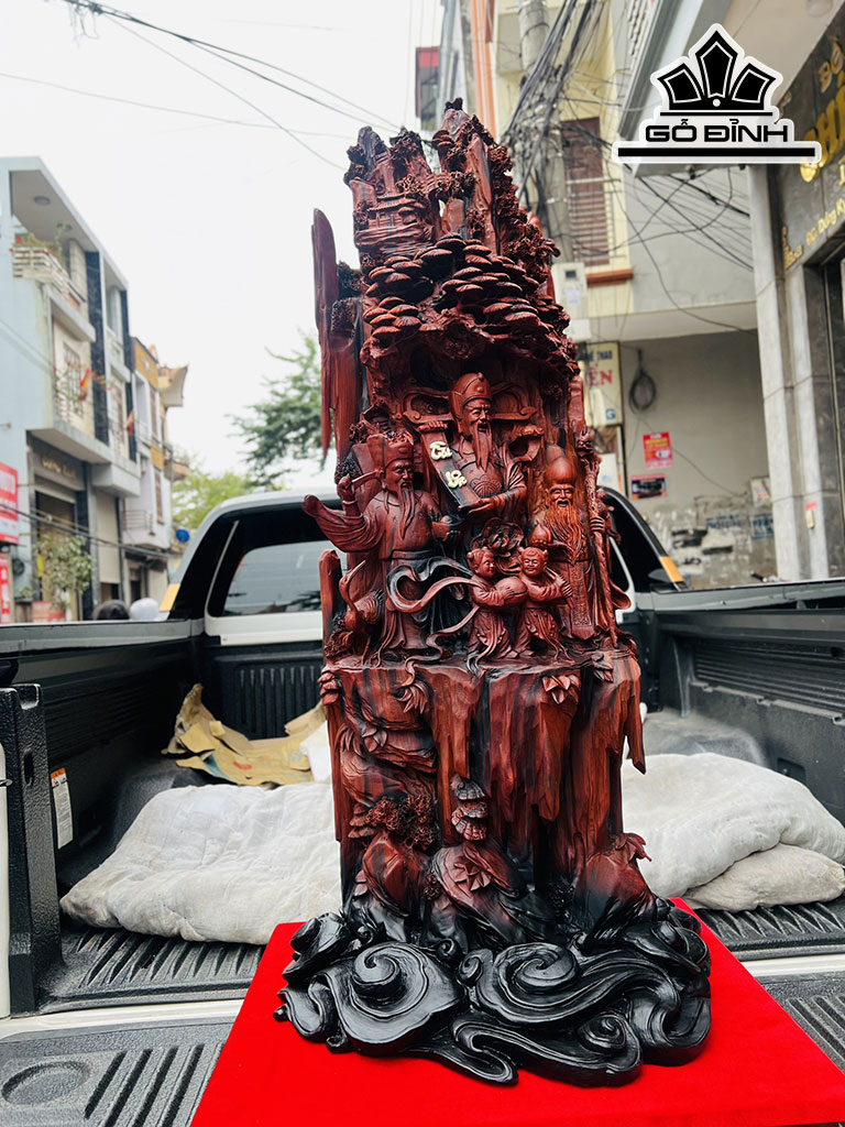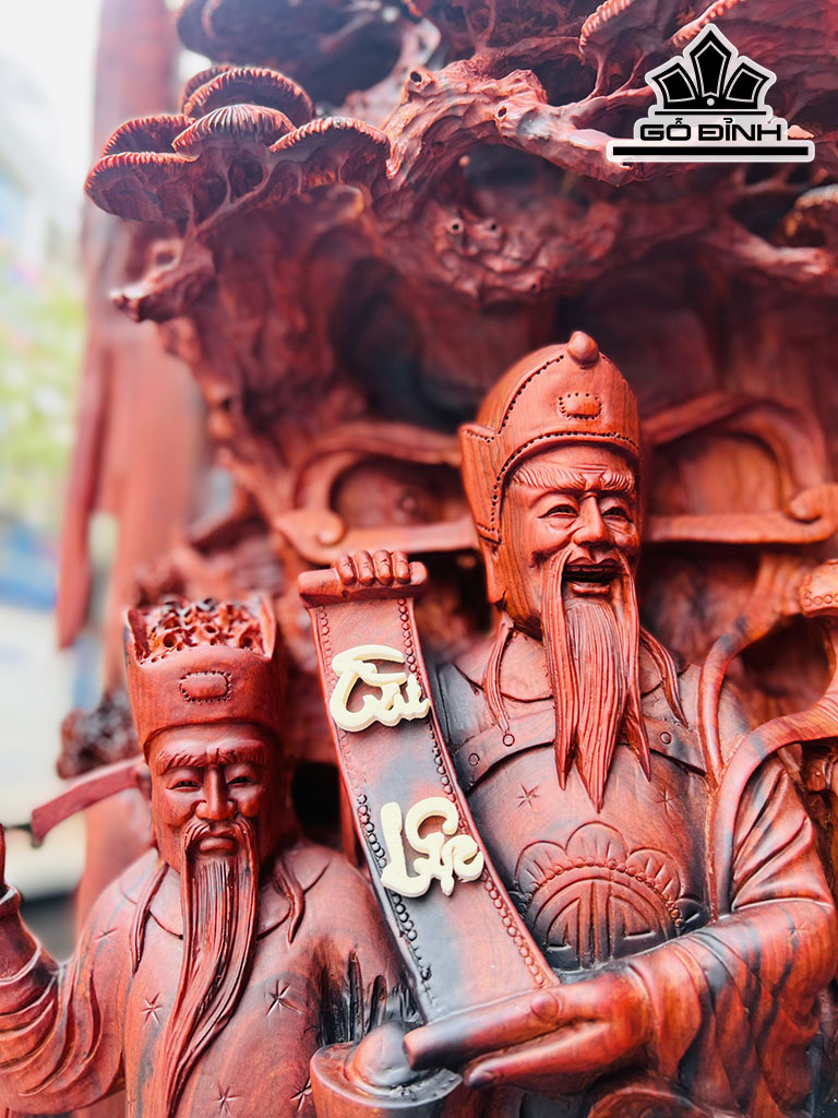 Tượng Phúc Lộc Thọ (Tam Đa) Gỗ Trắc Cao 115 Ngang 50 Sâu 40 (cm)