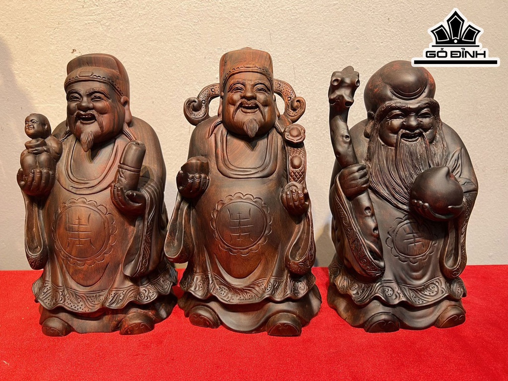 Tượng Phúc Lộc Thọ ( Tam Đa) Gỗ Trắc Cao 30 Ngang 16 Sâu 13 (cm)