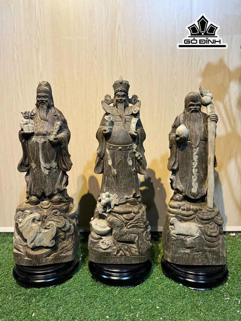 Tượng Phúc Lộc Thọ (Tam Đa) Gỗ Trầm Hương Cao 62 Ngag 20 (cm)
