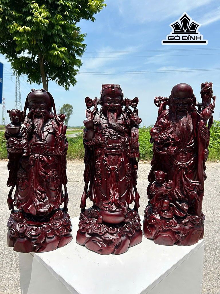 Tượng Phúc Lộc Thọ (Tam Đa) Gỗ Tử Đàn Cao 58 Ngang 25 Sâu 27 (cm)
