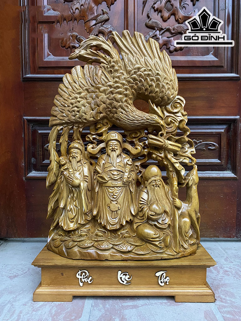Tượng Phúc Lộc Thọ (Tam Đa) Gỗ Xá Xị Cao 62 Ngang 43 Sâu 13 (cm)