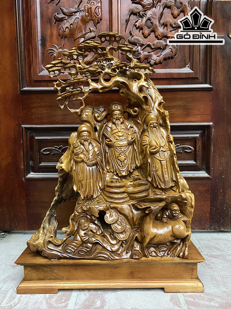 Tượng Phúc Lộc Thọ (Tam Đa) Gỗ Xá Xị Cao 70 Ngang 50 Sâu 14 (cm)