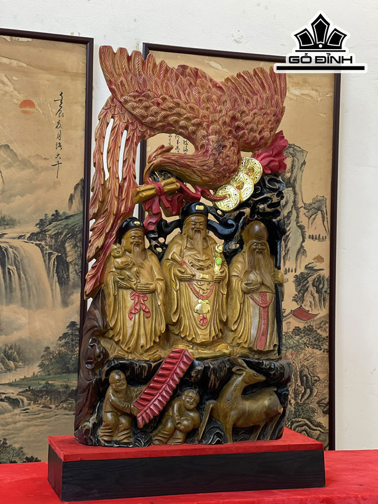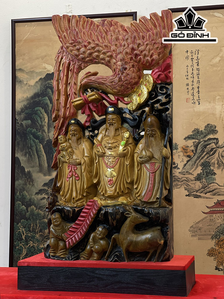 Tượng Phúc Lộc Thọ (Tam Đa) Gỗ Xá Xị Cao 83 Ngang 43 Sâu 16 (cm)
