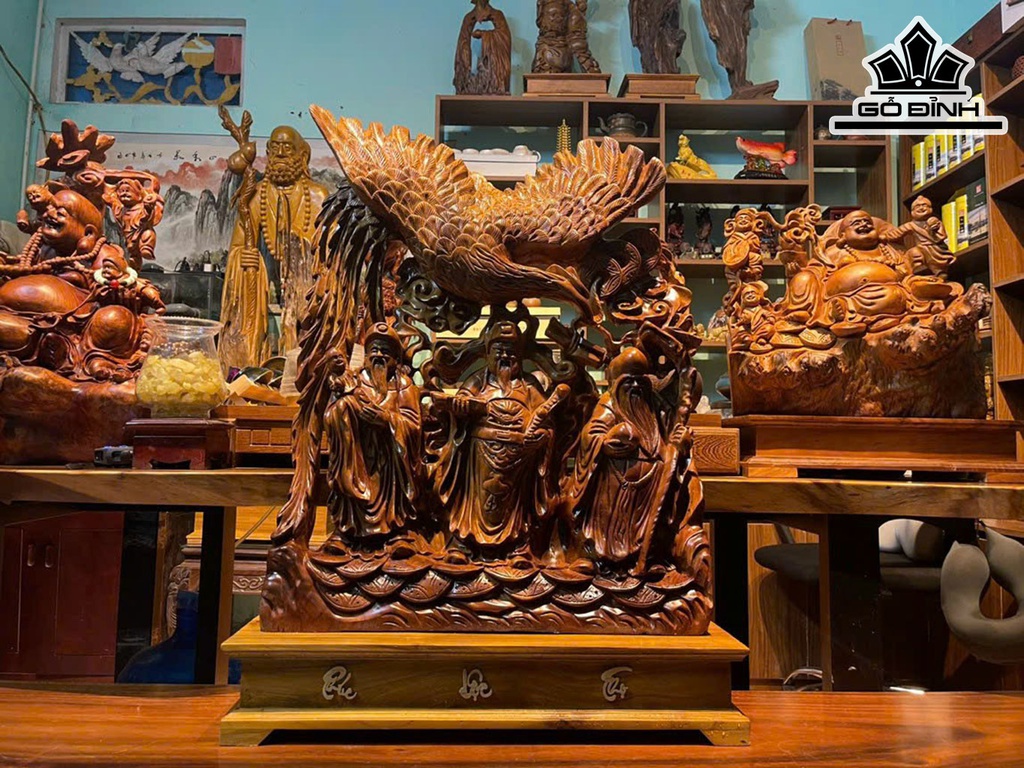 Tượng Phúc Lộc Thọ (Tam Đa) Gỗ Xá Xị Cao 86 Ngang 66 Sâu 20 (cm)