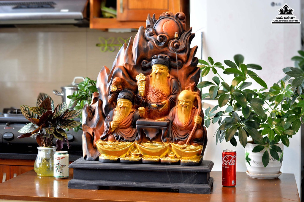 Tượng Phúc Lộc Thọ (Tam Đa) Gỗ Xá Xị (Gù Hương)
