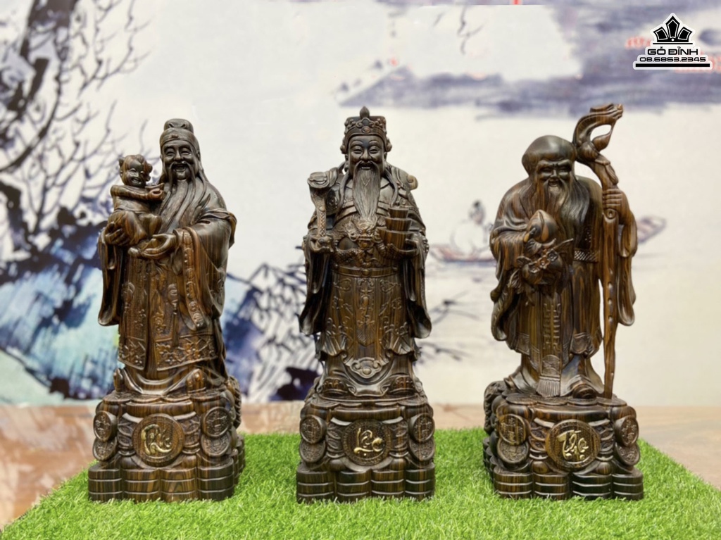 Tượng Phúc Lộc Thọ (TamĐa) Gỗ Mun Hoa Cao 60 Ngang 22 Sâu 15 (cm)