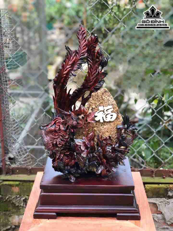 Tượng Phượng Hoàng Lửa Gỗ Trắc Cao 52 Ngang 30 Sâu 20 (cm)