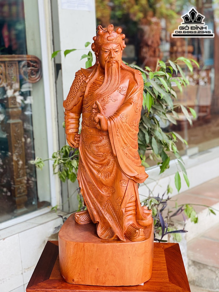 Tượng Quan Công Bắt Khuyết Gỗ Hương Cao 80 Ngang 30 Sâu 30 (cm)