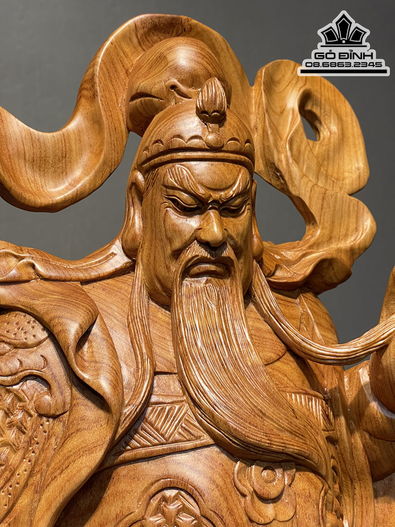 Tượng Quan Công Cầm Đao Gỗ Hương Đá
