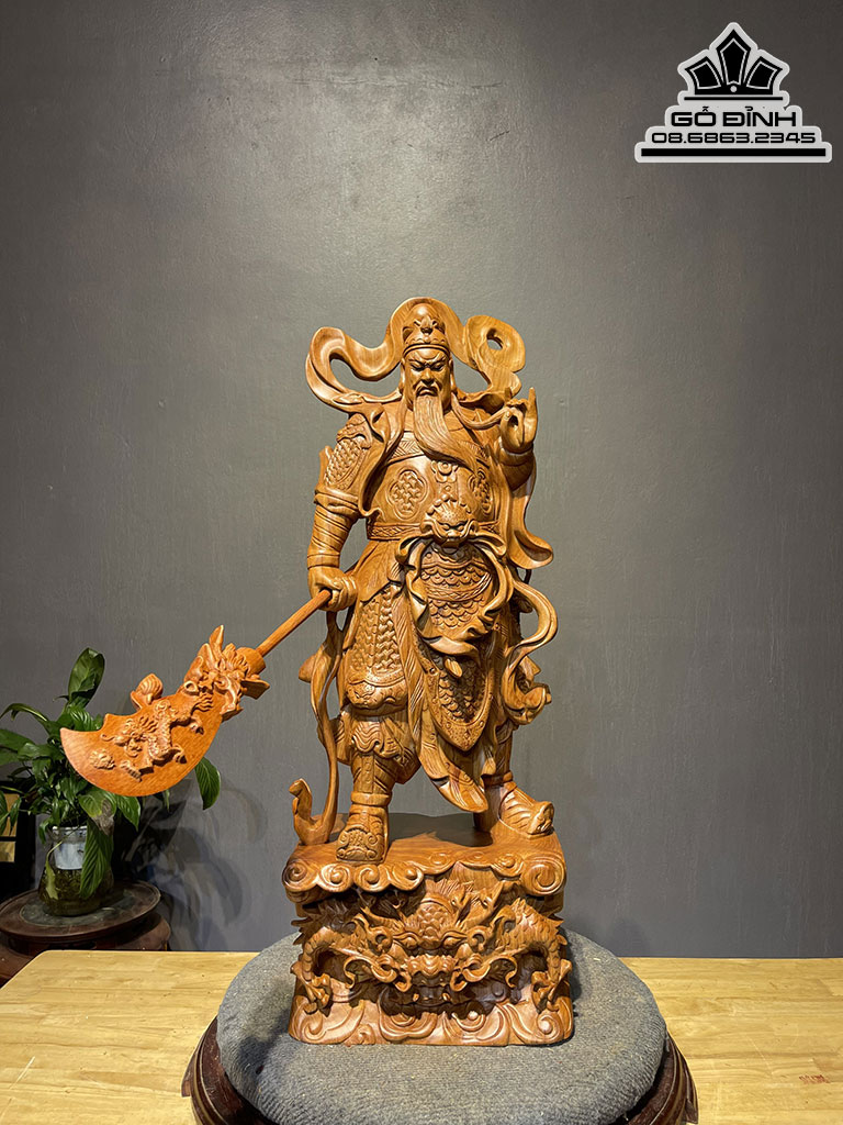 Tượng Quan Công Cầm Đao Gỗ Hương Đá Cao 76 Ngang 29 Sâu 18 (cm)
