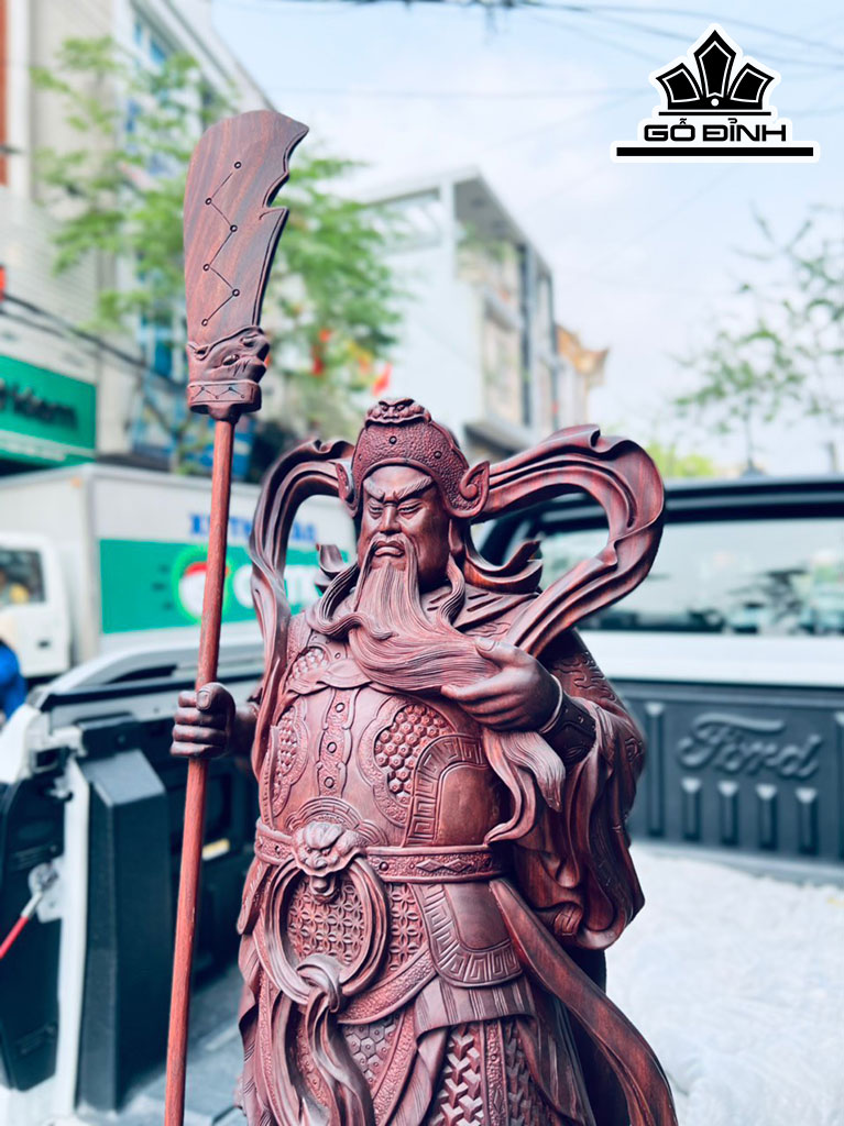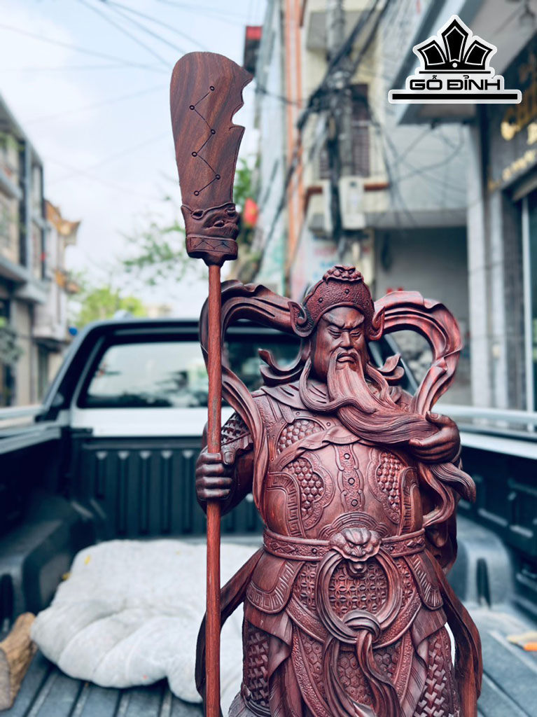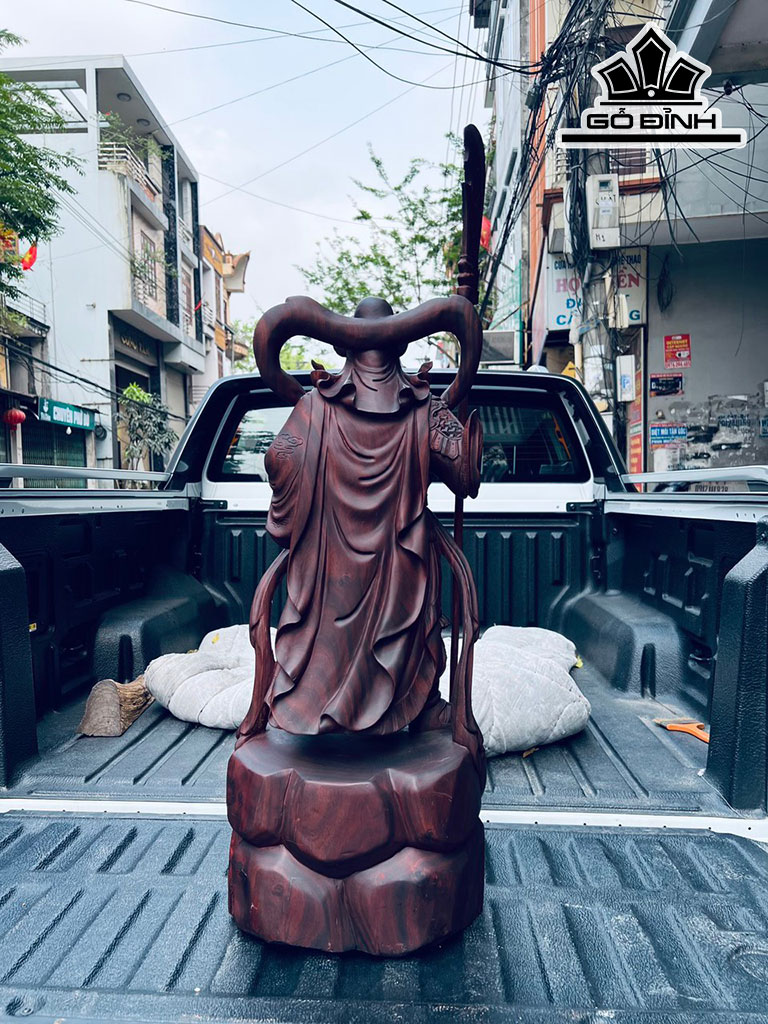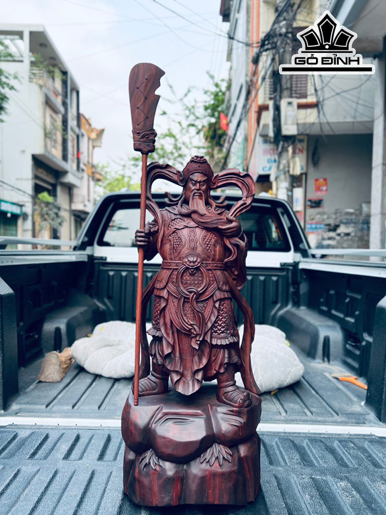 Tượng Quan Công Chấn Ải Gỗ Vương Mộc Tử Đàn Cao 77 Ngang 31 Sâu 27 (cm)