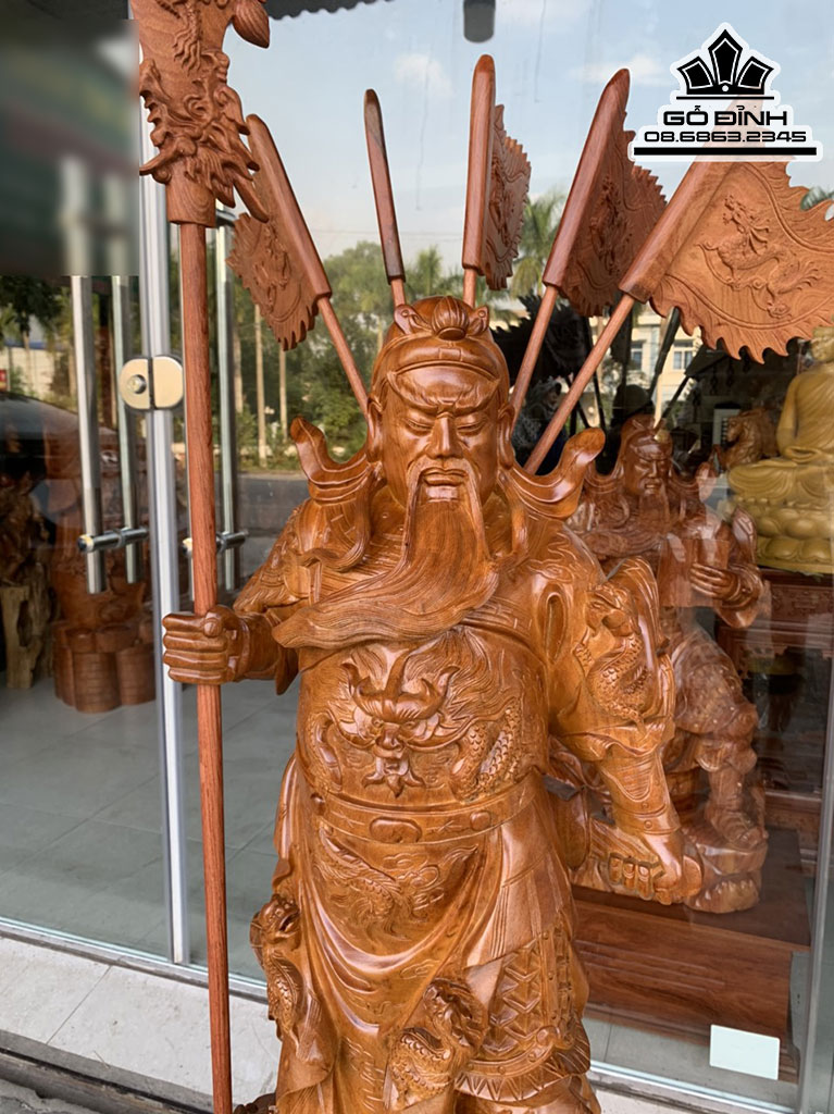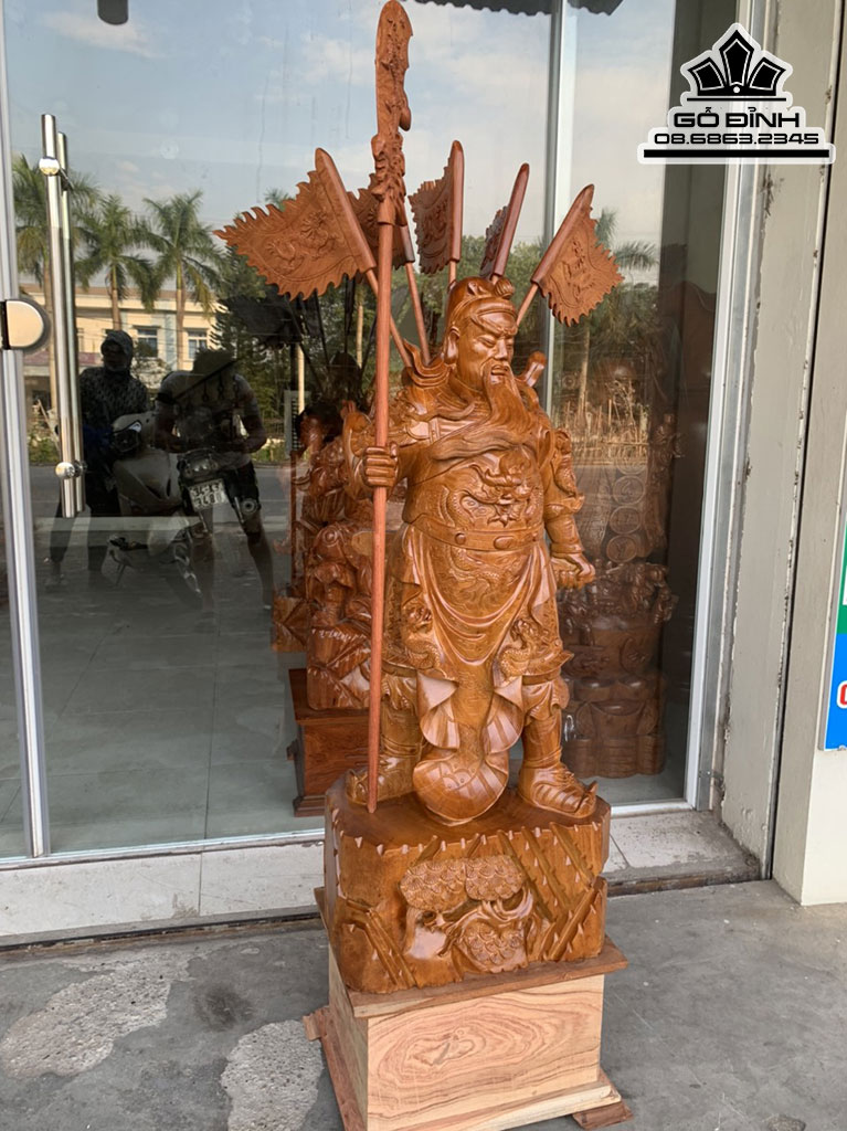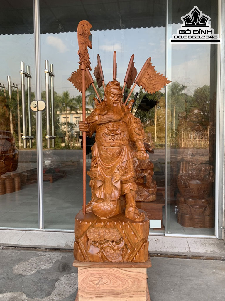 Tượng Quan Công Chống Đao Gỗ Hương Cao 100 Ngang 40 Sâu 27 (cm)