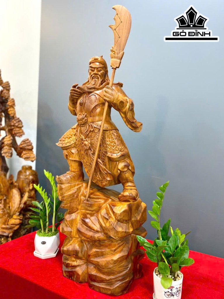 Tượng Quan Công Chống Đao Gỗ Hương Cao 96 Ngang 37 Sâu 25 (cm)