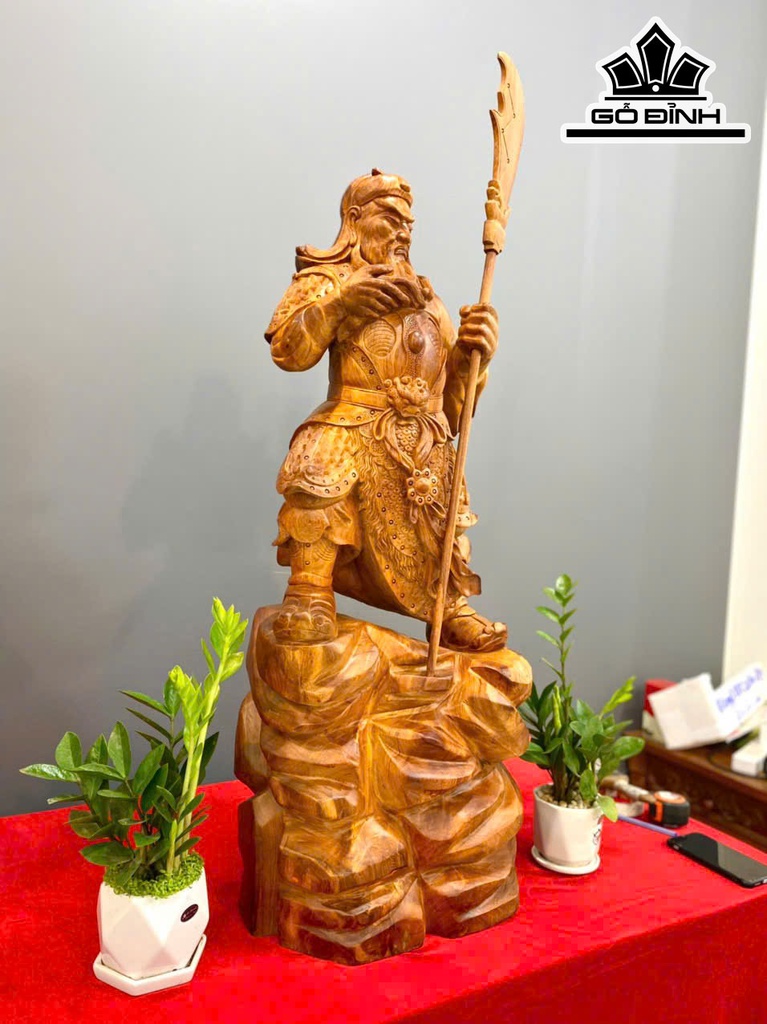 Tượng Quan Công Chống Đao Gỗ Hương Cao 96 Ngang 37 Sâu 25 (cm)