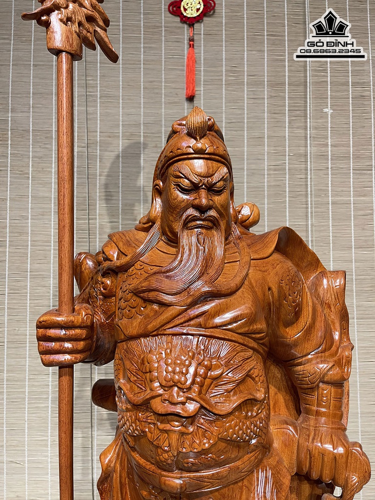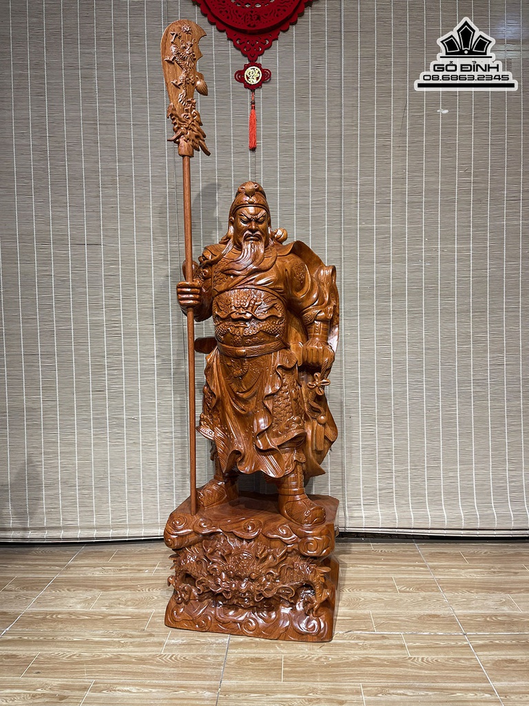 Tượng Quan Công Chống Đao Gỗ Hương Đá