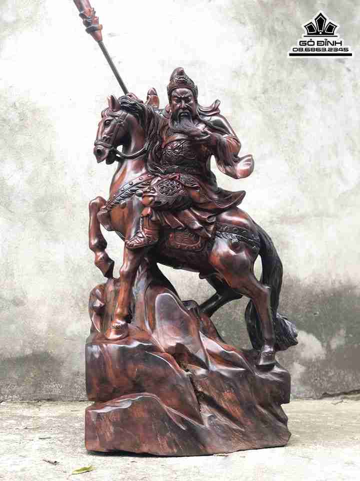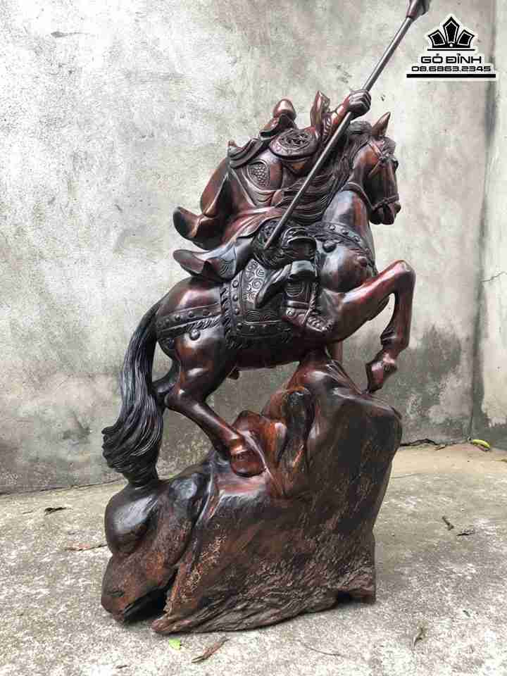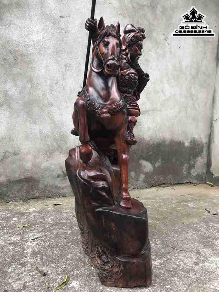 Tượng Quan Công Cưỡi Ngựa Gỗ Trắc Cao 81 Rộng 46 Dày 23 (cm)