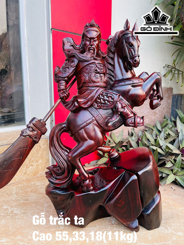 Tượng Quan Công Cưỡi Ngựa Gỗ Trắc Cao 55 Ngang 33 Sâu 18 (cm)