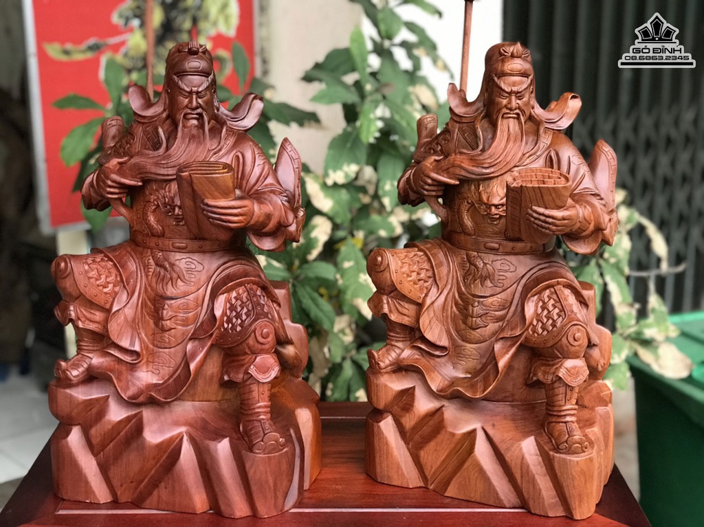 Tượng Quan Công Đọc Sách Gỗ Hương Cao 50 Rộng 28 Sâu 20 (cm)