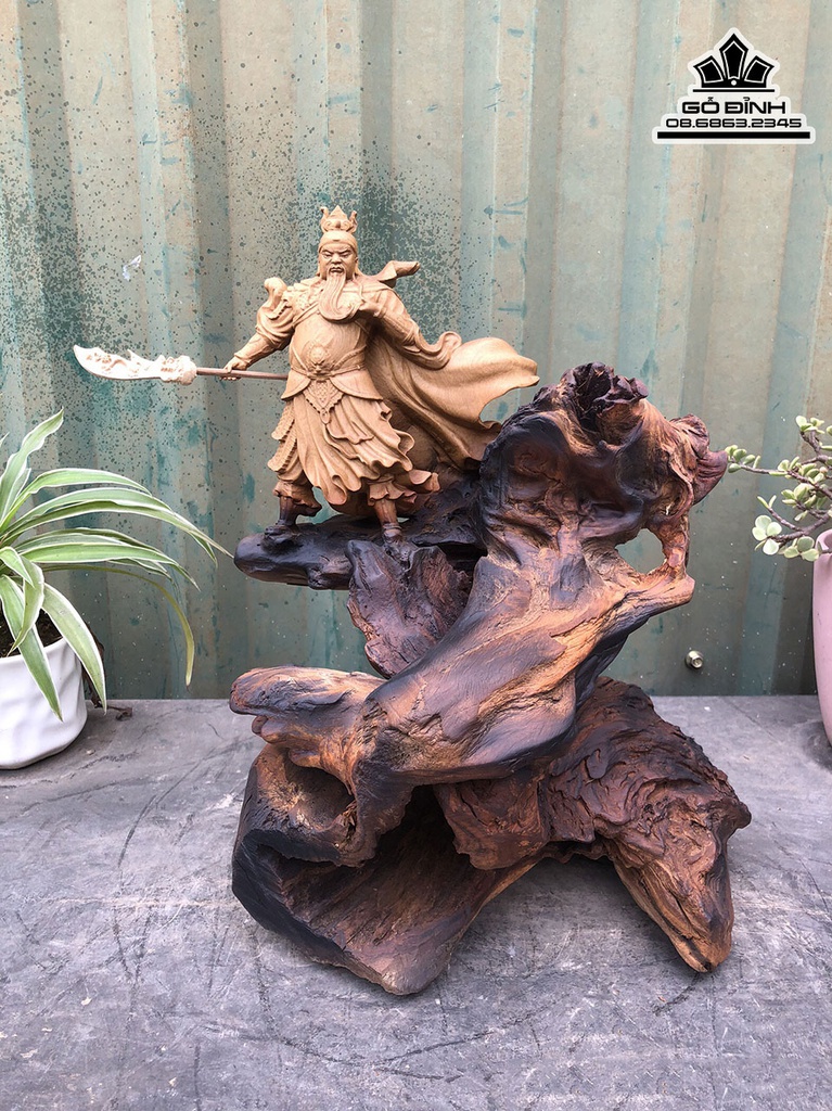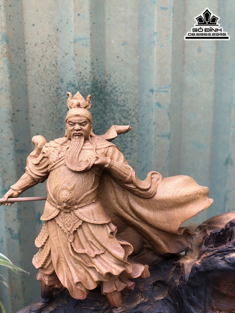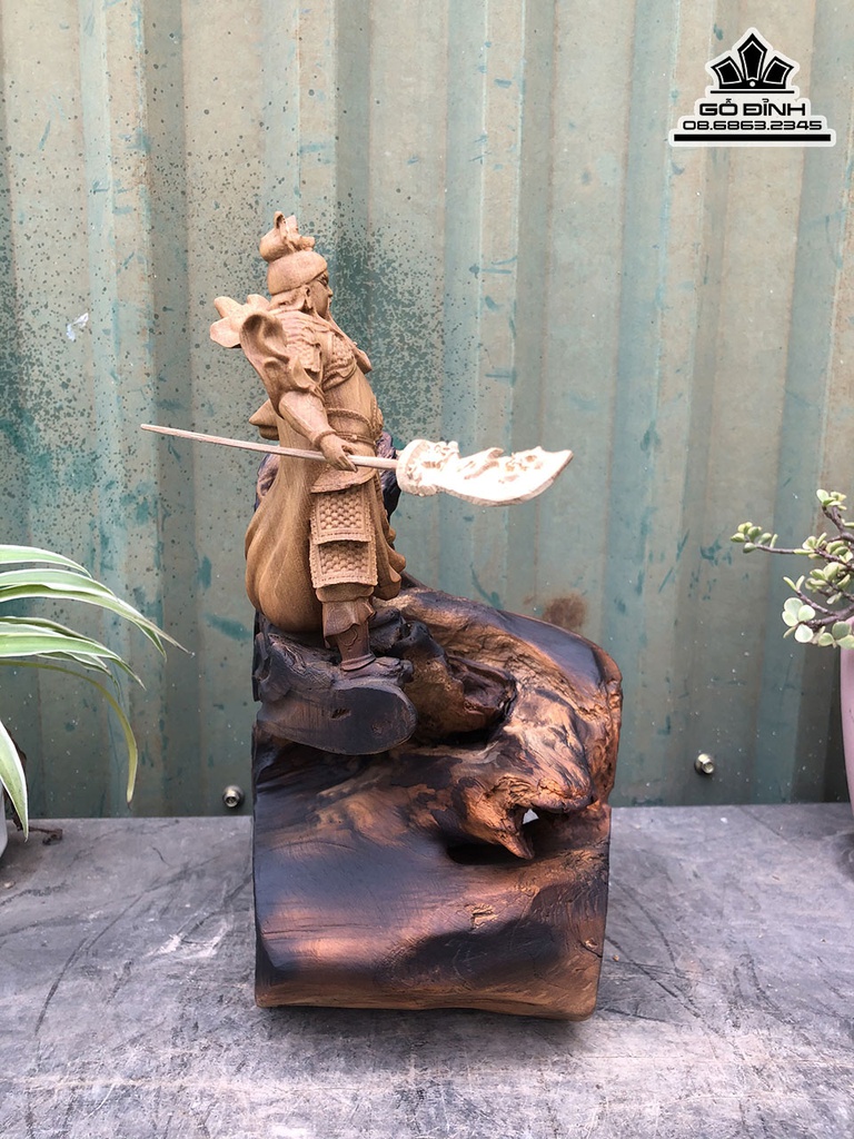 Tượng Quan Công Gỗ Bách Xanh Cao 31 Ngang 23 Sâu 16 (cm)