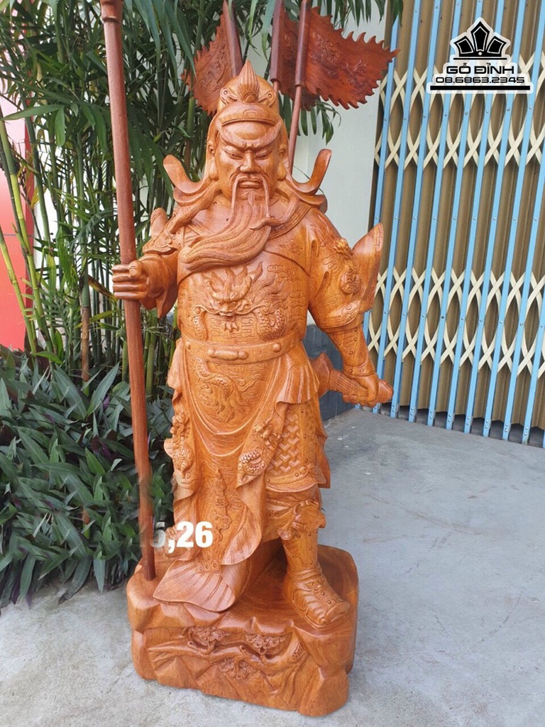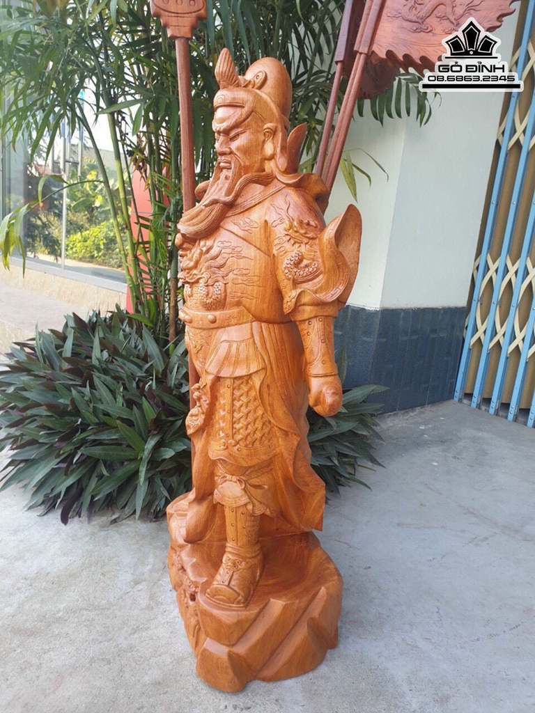 Tượng Quan Công Gỗ Hương Cao 100 Ngang 45 Sâu 26 (cm)