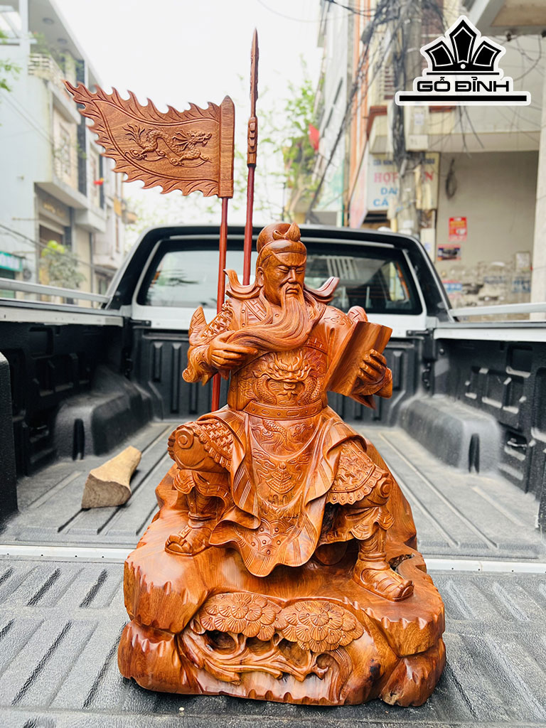 Tượng Quan Công Gỗ Hương Cao 67 Ngang 45 Sâu 35 (cm)