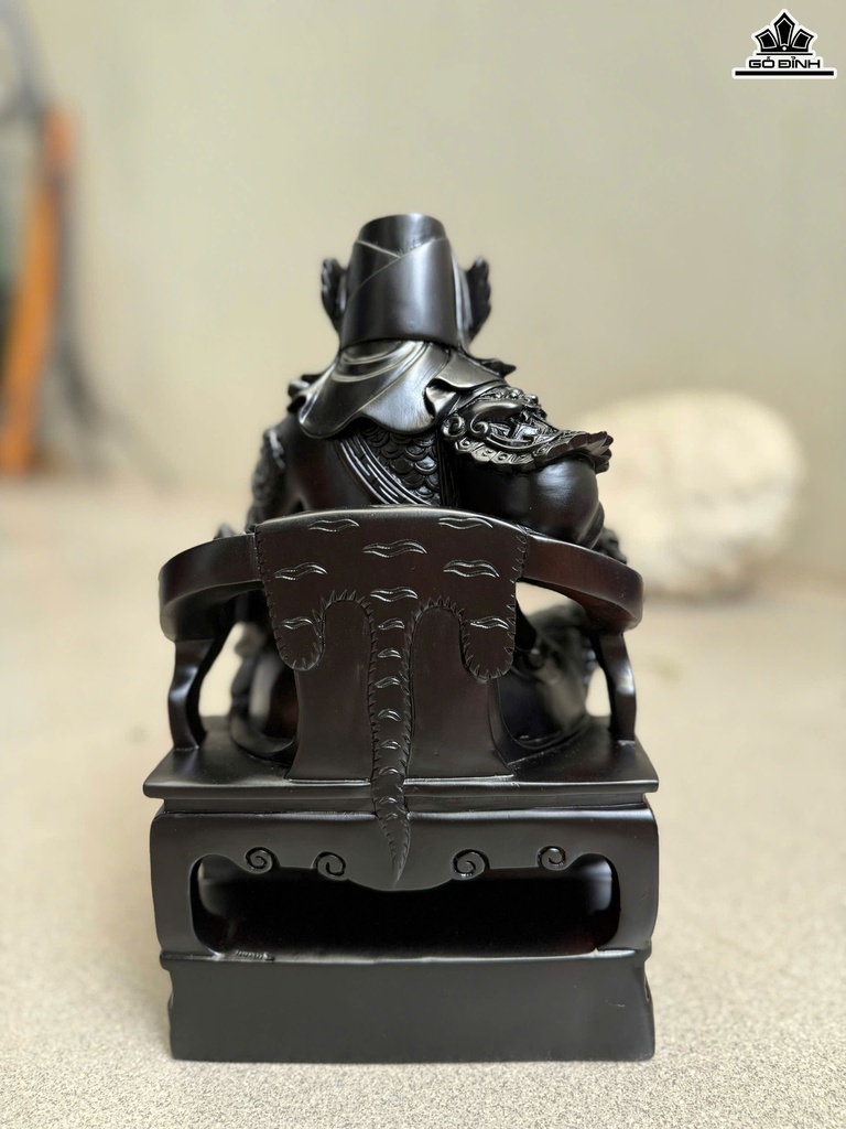 Tượng Quan Công Gỗ Mun Hoa ( Sơn Đen) Cao 28 Ngang 16 Sâu 14 (cm)