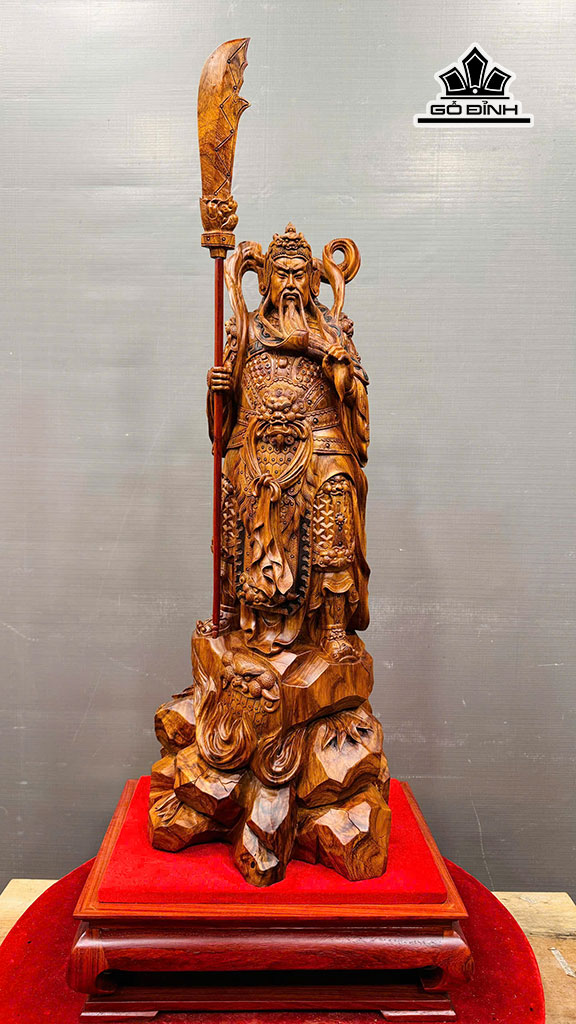 Tượng Quan Công Gỗ Sưa Cao 64 Ngang 28 Sâu 22 (cm) - Cả Đao 80