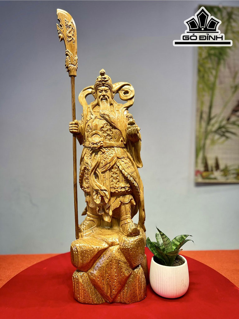 Tượng Quan Công Gỗ Thủy Tùng Cao 60 Ngang 20 Sâu 17 (cm)