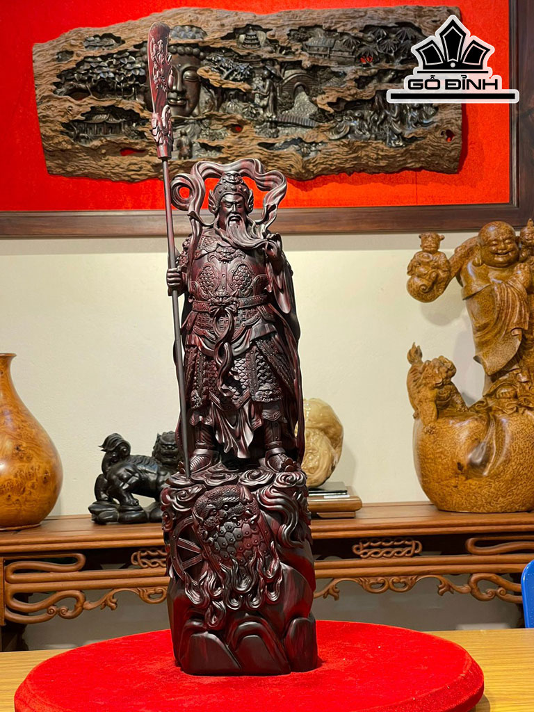Tượng Quan Công Gỗ Tử Đàn Tím Cao 59 Ngang 17 Sâu 14 (cm)