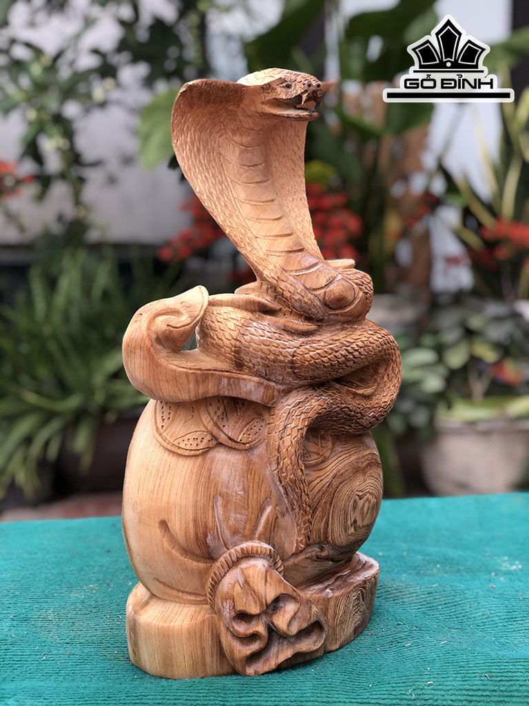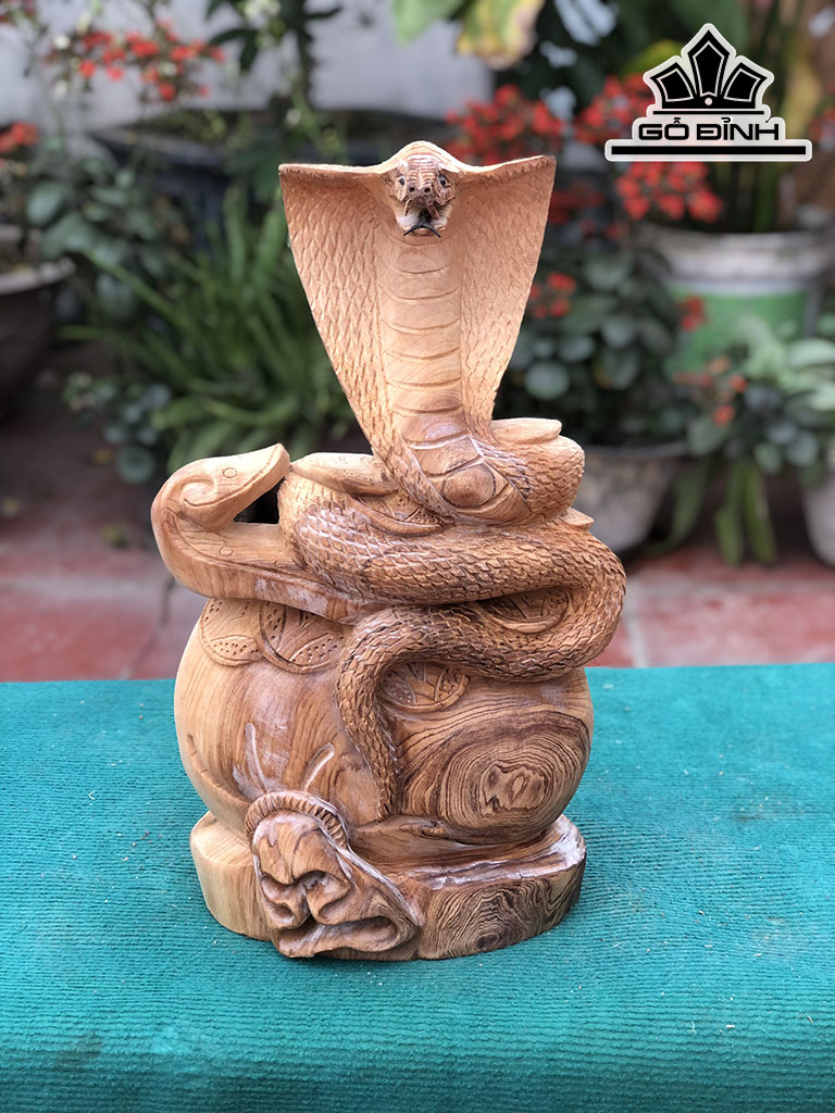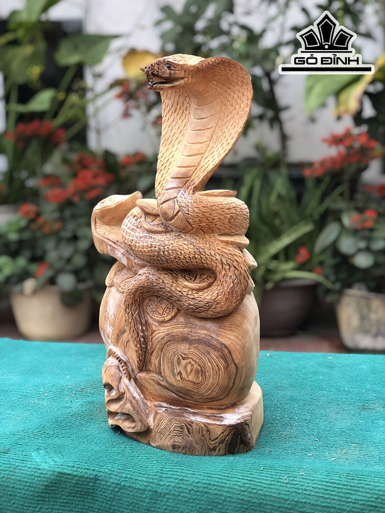 Tượng Rắn Gỗ Ngọc Am Cao 45 Ngang 25 Sâu 18 (cm)