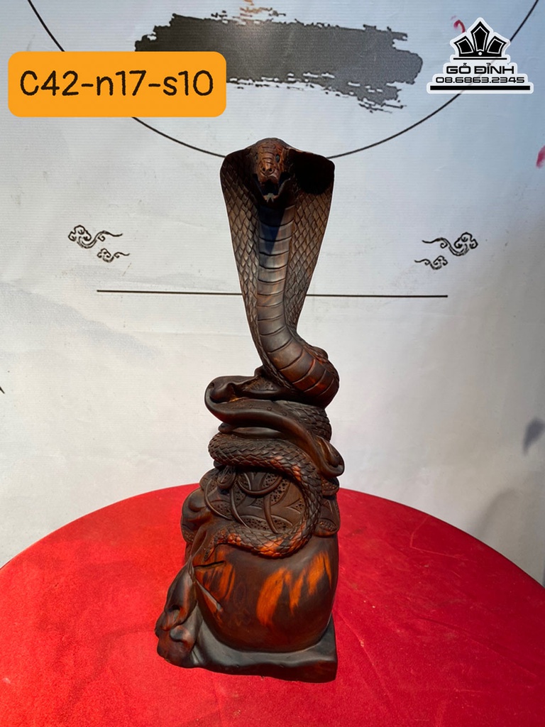 Tượng Rắn Gỗ Trắc Cao 42 Ngang 17 Sâu 10 (cm)