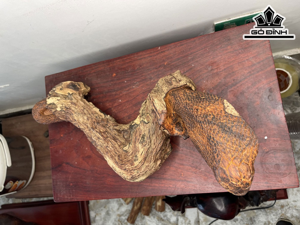 Tượng Rắn Phong Thủy Gỗ Cẩm Lông Chuột Cao 18 Ngang 45 Sâu 23 (cm)