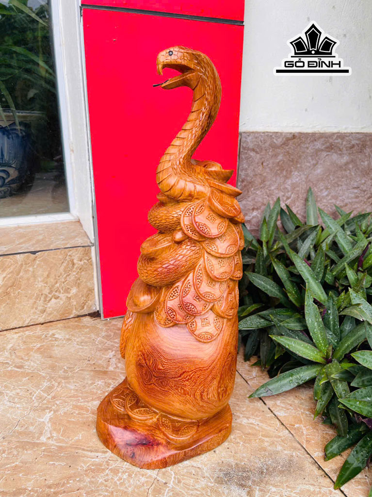 Tượng Rắn Phong Thủy Gỗ Hương Cao 52 Ngang 24 Sâu 18 (cm) 6kg