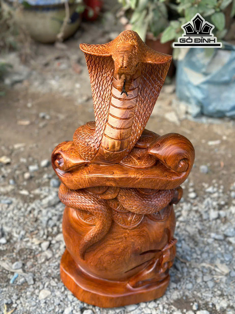 Tượng Rắn Phong Thủy Gỗ Hương Cao 55 Ngang 24 Sâu 18 (cm)